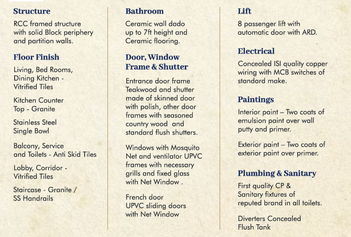 The residential apartments are centrally located, comfort, aesthetics and amenities are inter woven in the fabric of the clients vision of a home. Clear titles, interiors, exterior, ambience and every requirement of the esteemed client are met with precision.Every